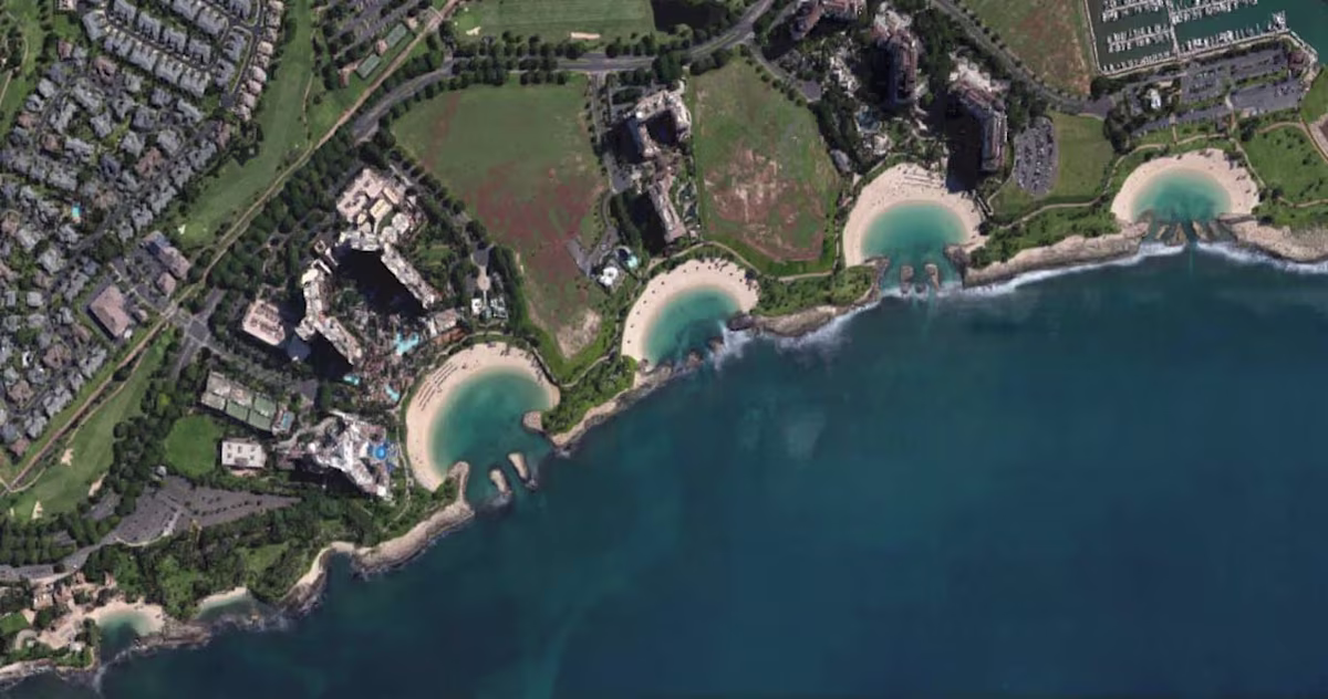 The lagoons in front of the hotels are often a little busier than the lagoons at either end but overall, this is a great place to get away from the crowds and see some Hawaiian aquatic life. You can use the hotel restaurants for drinks and snacks but you can’t use the beach chairs or swimming pools.