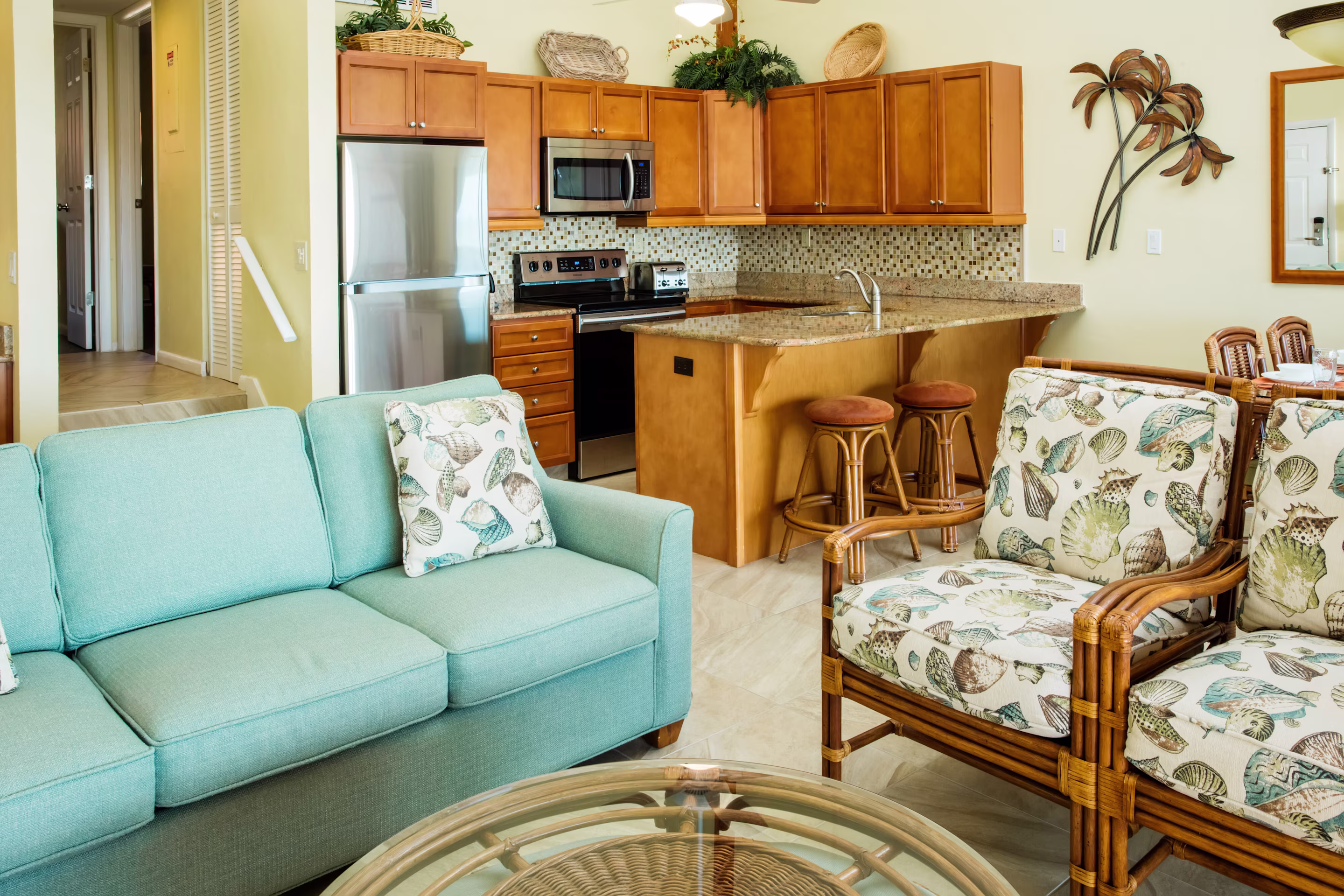Enjoy spacious 2-Bedroom Suites with full kitchens, screened balconies and island-inspired décor.