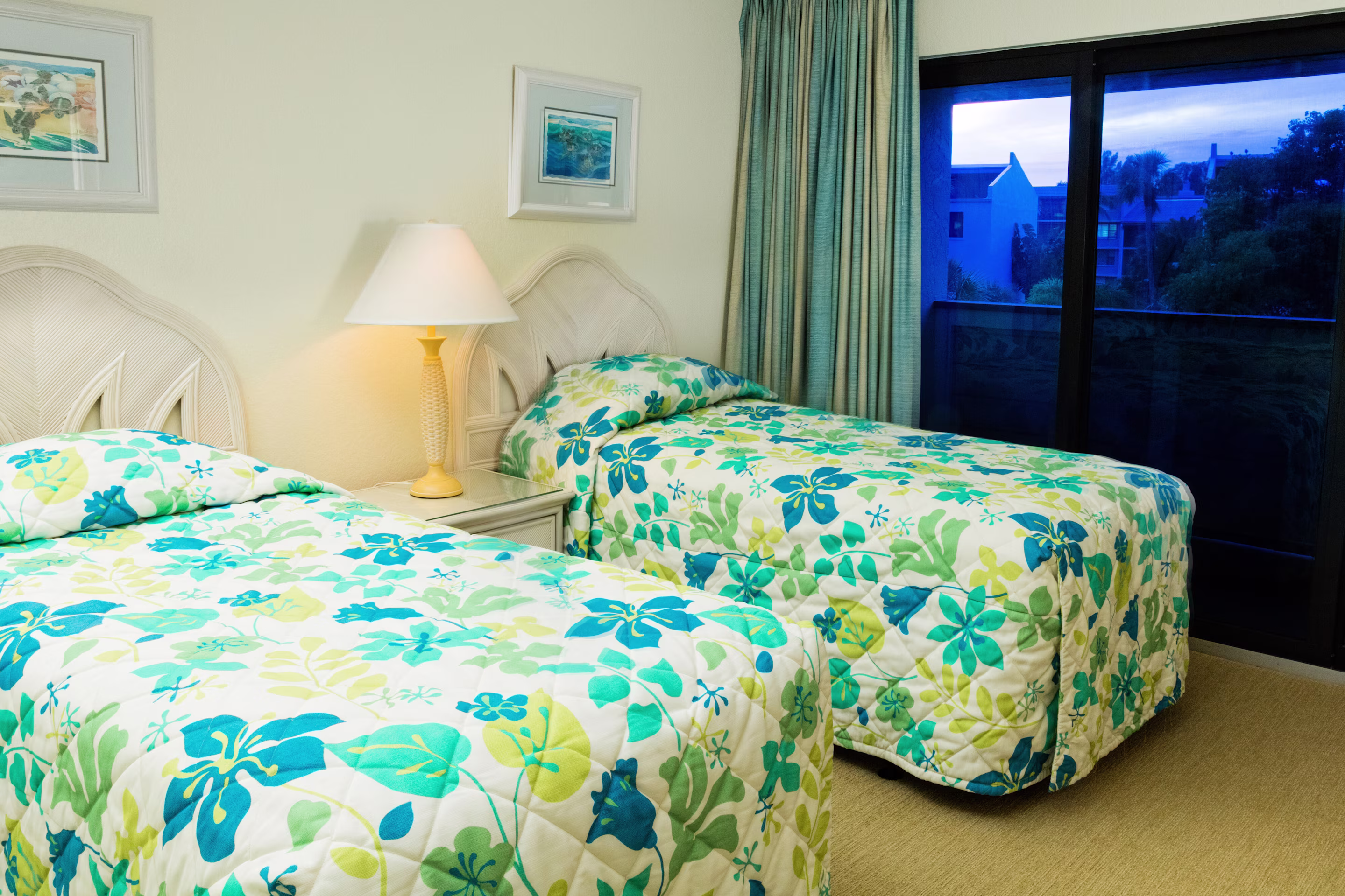 Enjoy spacious 2-Bedroom Suites with full kitchens, screened balconies and island-inspired décor.