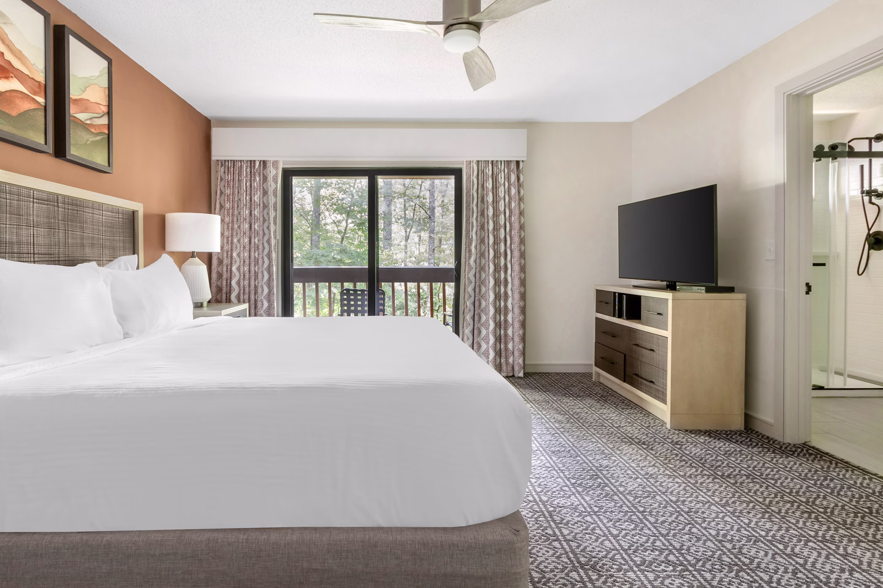 Immerse yourself in the beauty of the Blue Ridge Mountains at Fairway Forest Resort, a family- friendly, all-Suites retreat with access to year-round activities throughout the Sapphire Valley. Guests can enjoy an indoor pool, two seasonal outdoor pools, a miniature golf course, and basketball, tennis and pickleball courts. You’ll also have access to the adjacent Sapphire National Golf Club, a dry sauna, a recreation and games room, a children’s activity program, ski slopes, and water sports like kayaking and paddleboarding on nearby Fairfield Lake (additional fees apply). All such amenities are separate from lodging sites to preserve the tranquil, forested environment of your accommodations.