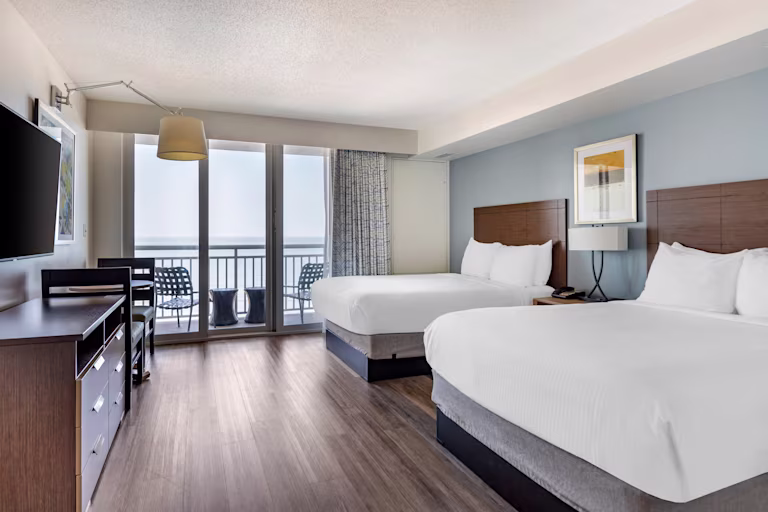 Enjoy indoor and outdoor pools, a hot tub, a fire pit, a kids’ activity center, Studios and multi- bedroom Suites, a fitness center and easy access to the Virginia Beach Boardwalk while you’re here.